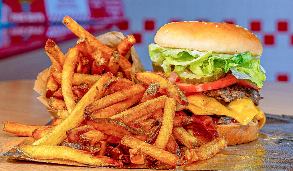 The Plaza Hotel & Casino is excited to welcome the popular hamburger chain, Five Guys to its casino floor this summer. And starting in the spring, Five Guys will debut a hot dog cart outside of Carousel Bar under the Plaza’s iconic dome where guests can enjoy the brand’s unique take on the all-American classic. The 2,200 sq. ft. restaurant will feature seating for 60 guests with indoor seating and an outdoor patio, where guests can enjoy Five Guys’ signature menu including made-to-order burgers, hand-cut fries, and hand spun milkshakes.