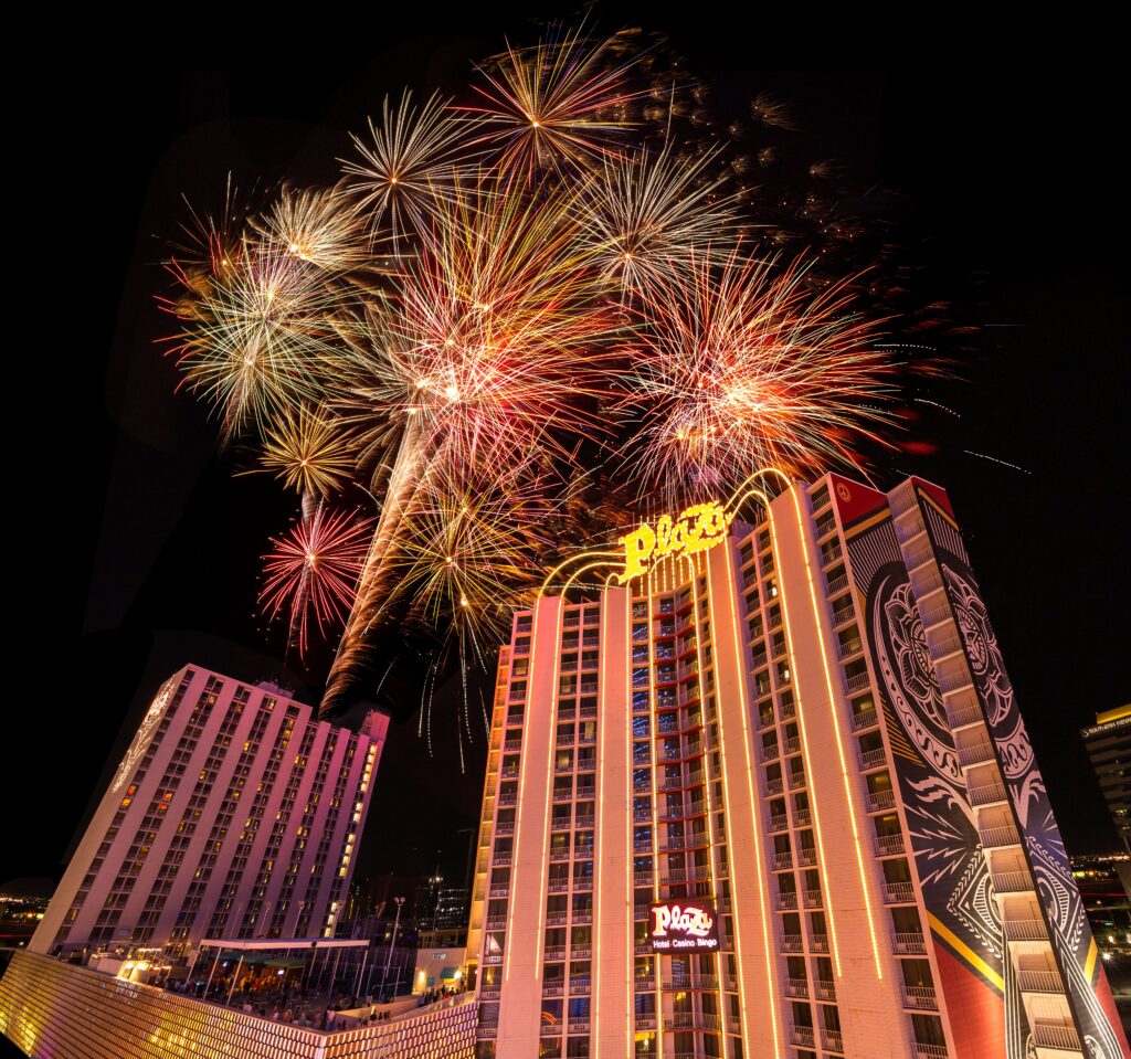 LAS VEGAS (June 12, 2025) – The Plaza Hotel & Casino will celebrate the Fourth of July with a bigger and brighter version of its weekly Welcome to the Weekend Friday Firework Show. As in past years, it will be the only Fourth of July fireworks show in downtown Las Vegas, and it is free to view.