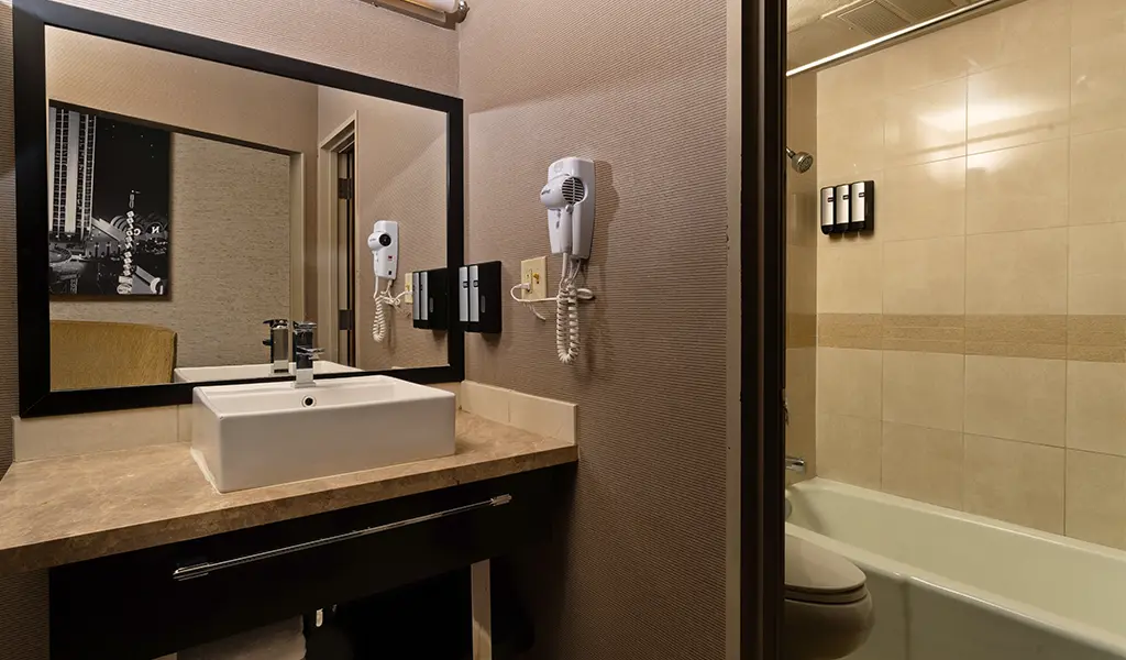 Our one bedroom suites (approximately 650 square feet) come with a living room parlor, a total of 1.5 bathrooms, in-room safe, multiple flat-screen televisions with premium cable channels, mini refrigerator, coffee maker, wet bar and all of our deluxe room amenities. Each bed features luxury bedding with fresh and crisp triple sheeting and select pillows.